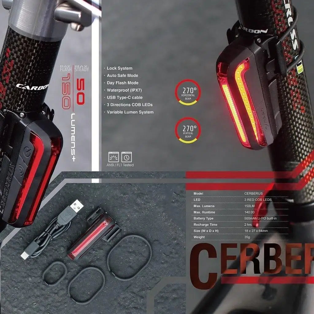 Moon Cerbelus ışık sayesinde hava karardıktan sonra sürüş sırasında görünür kalın. Parlak 150 lümen geniş ışın çıkışından yararlanan ve uygun USB şarjı sunan, inanılmaz derecede çok yönlüdür ve çeşitli koltuk direklerine sığabilir.
