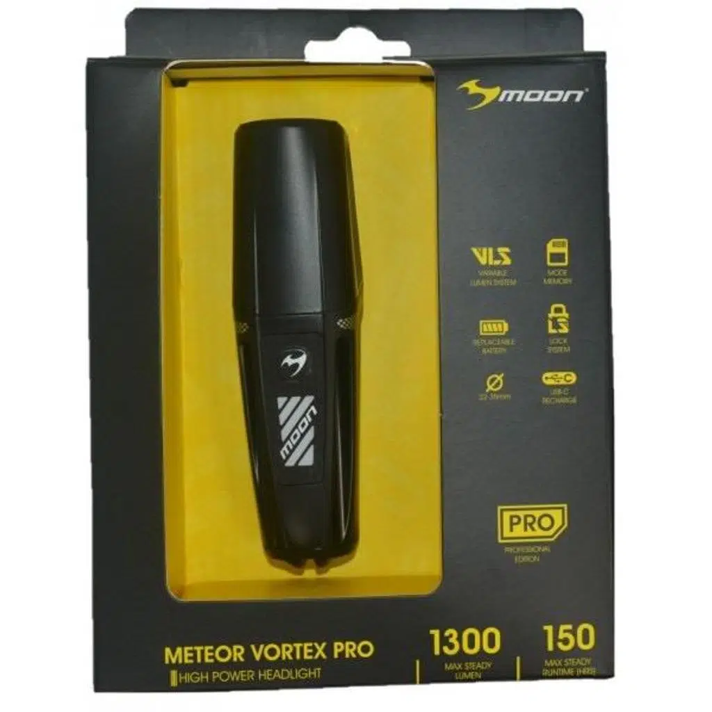 Moon Meteor Vortex Pro, etkileyici ışık süresi, değişik mod seçeneği, pil ömrü ve etkili tasarımı ile en karanlık yolları bile rahatlıkla geçmenizi sağlar.
